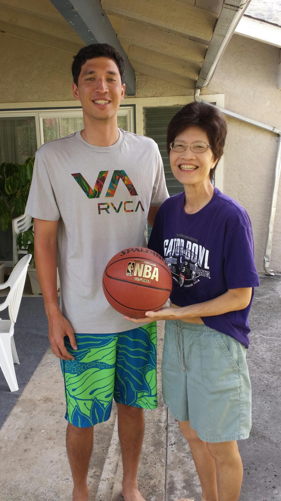 One of my goals after surgery has been to be able to dribble a ball between my legs, which I have never been able to do. Since Chuck and Jenny were home for a friend’s wedding this month, it was a perfect time for Chuck to show me how to master the crossover dribble move.